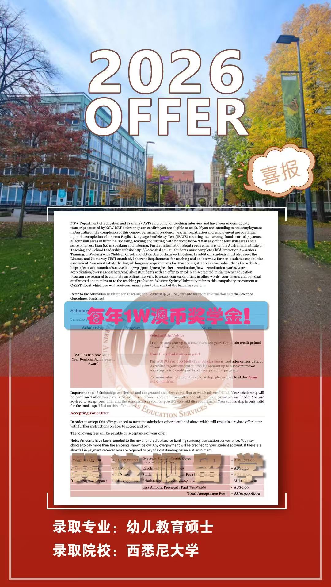 太赞了~恭喜我们的Ding同学获得悉尼大学幼儿教学硕士Offer,棒棒哒~